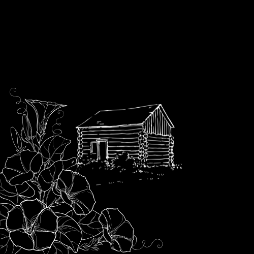 小屋は蔦で覆われていて、朝顔の花が1つ2つ咲いていました。